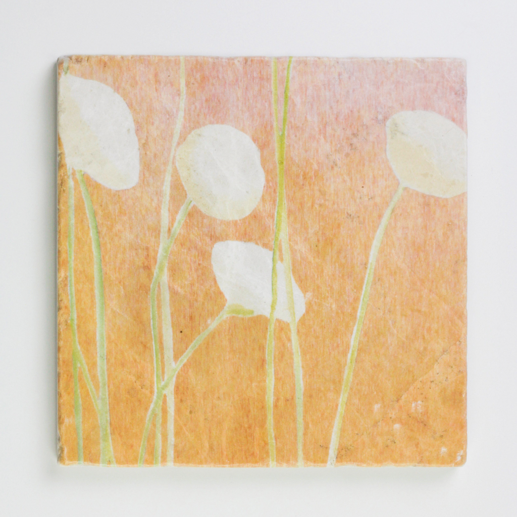 Enjoy nature and its beauty in this trivet by India and Purry. Derived from the artist's original oil paintings, this marble trivet is both functional and lovely displayed in your kitchen. With a cork backing, the trivet measures 6 inches. Due to the nature of marble, each trivet is unique. Handcrafted in US.