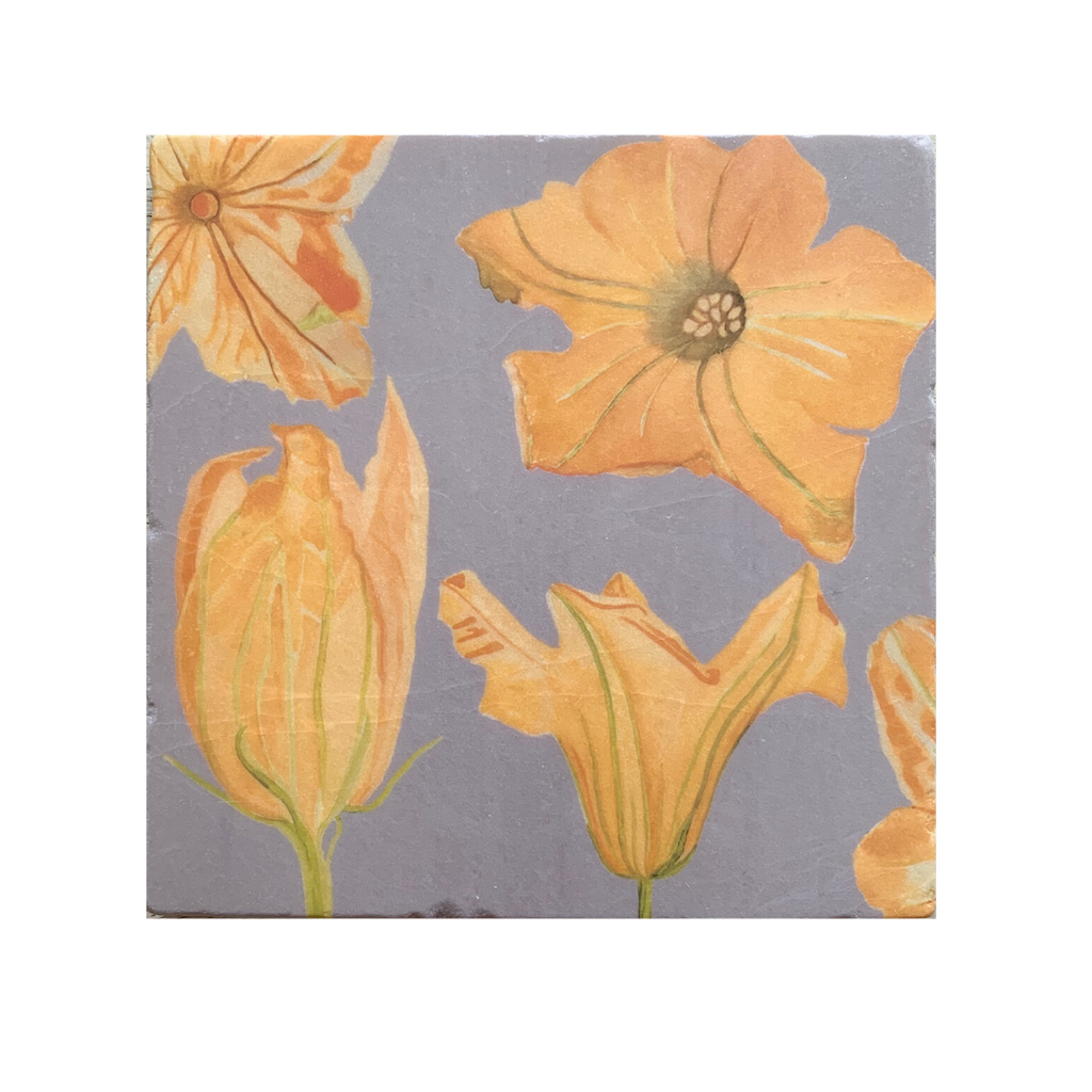 Trivet - Pumpkin Flowers on Grey