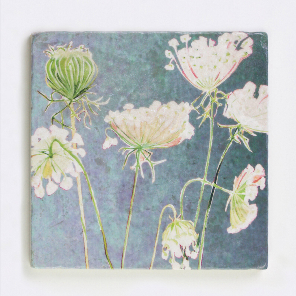 Enjoy nature and its beauty in this trivet by India and Purry. Derived from the artist's original oil paintings, this marble trivet is both functional and lovely displayed in your kitchen. With a cork backing, the trivet measures 6 inches. Due to the nature of marble, each trivet is unique. Handcrafted in US.