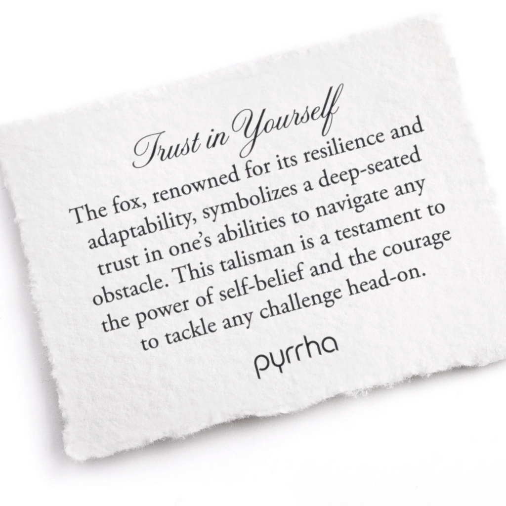 Cast using authentic wax seals and imagery from the Victorian Era, Pyrrha talismans are designed to inspire the wearer with its heralded meaning.The fox, renowned for its resilience and adaptability, symbolizes a deep-seated trust in one's abilities to navigate any obstacle. This talisman is a testament to the power of self-belief and the courage to tackle any challenge head-on. Sustainably cast in 100% recycled sterling silver, the pendant measures 0.70" x 0.82" and comes on an 18" sterling silver curb chain. Comes with a letterpress meaning card (handmade from recycled materials) and a black cotton Pyrrha pouch. Lovingly handcrafted in Vancouver, Canada.