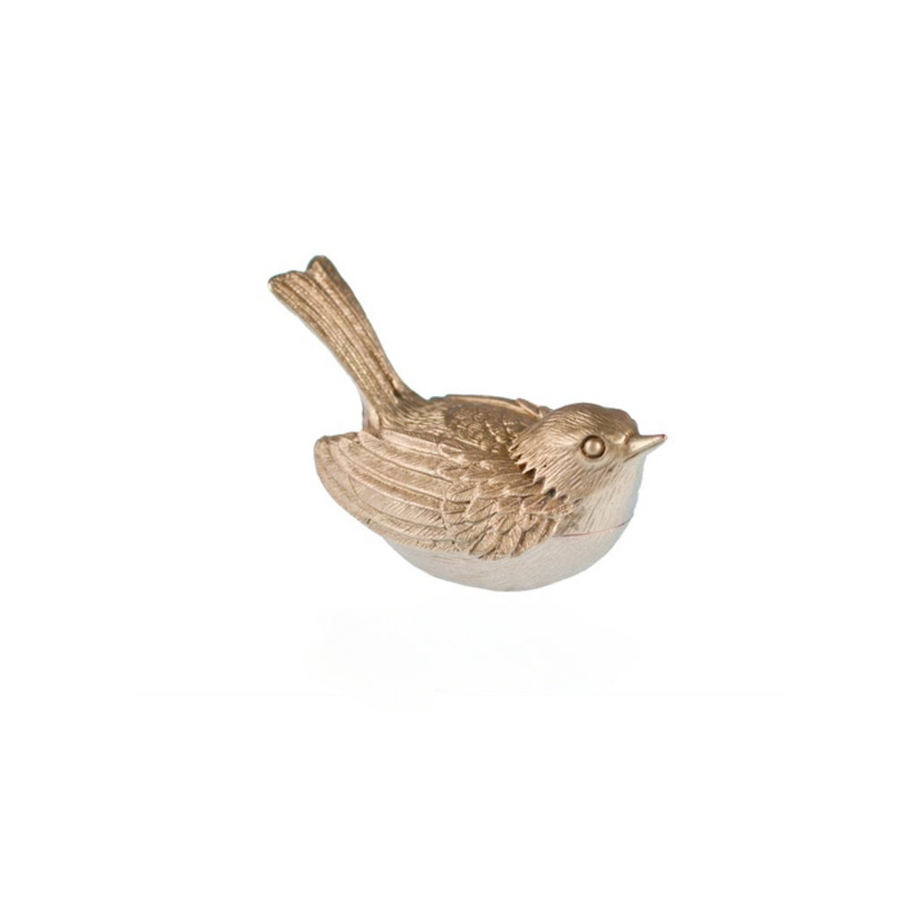 Behold nature and all of its charm with Michael Michaud and Silver Seasons! This sweet little box in the shape of a warbler is great for putting your small trickets inside or just to have as a cute decor. Made of pewter with an antique brass finish. Measures 3" long, 1.5" wide and 1.5" tall. Made in the US.