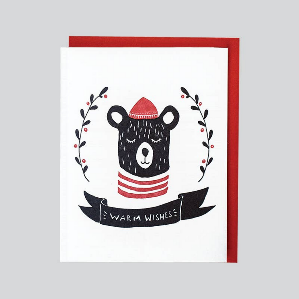 Give this cozy holiday card by folio press and paperie! Letterpress A2 blank card printed on 140# French Muscletone paper. Measures 4.25" x 5.5". Comes with a brown deep flap envelope. Handmade in US.