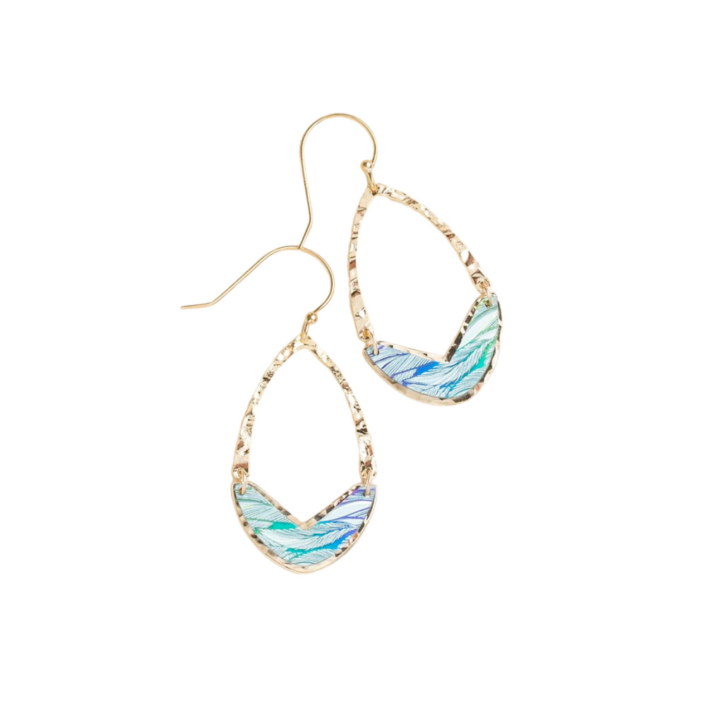Add a pop of color and timeless design with these earrings by Holly Yashi. Made of niobium and gold overlay, these earrings are light and feature design of feathers in colors of blue and purple. Measure approximately 2" L x 0.87" W. Handcrafted in US.