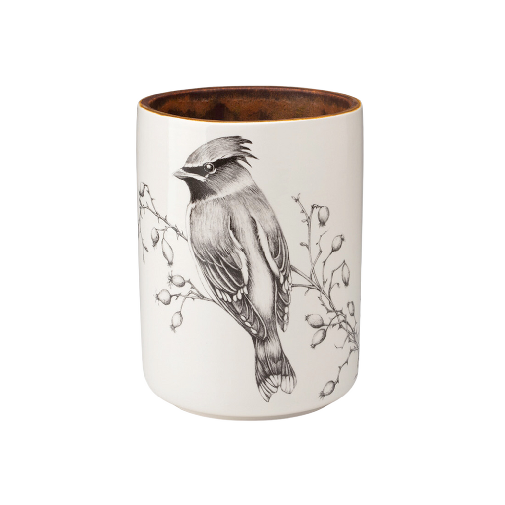 Welcome the charm and serenity that is nature into your home with a beautiful Laura Zindel piece! Both functional and decorative, this utensil cup adorns the artist's original illustration of a suffolk sheep. Made from earthenware and glazed with non-toxic, low-fire glazes. Measures 5.25 inches in diameter and 7 inches tall. Handcrafted in US Hand wash only in warm soapy water with a non-abrasive cloth; they should not be placed in the oven, microwave, or dishwasher and should be used only as serving dishes. Avoid storing for long periods of time in direct sunlight.