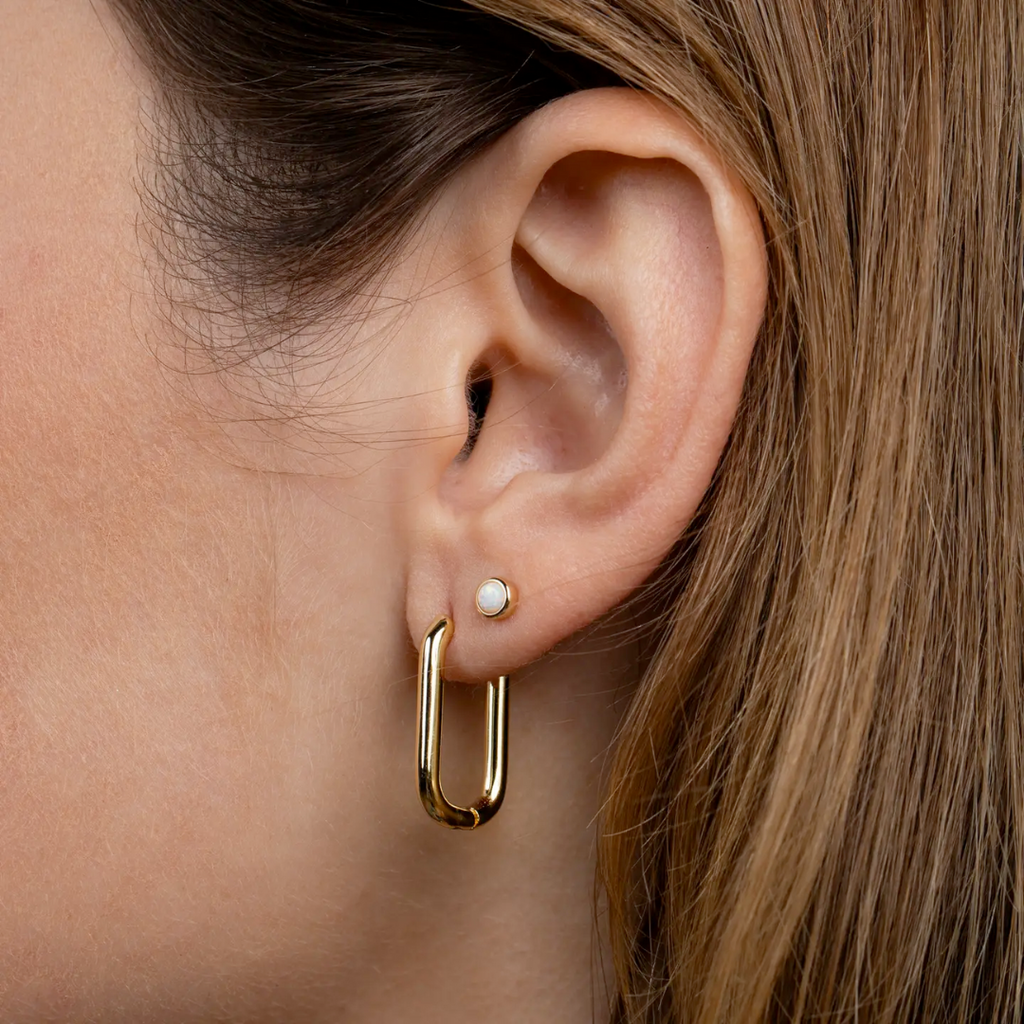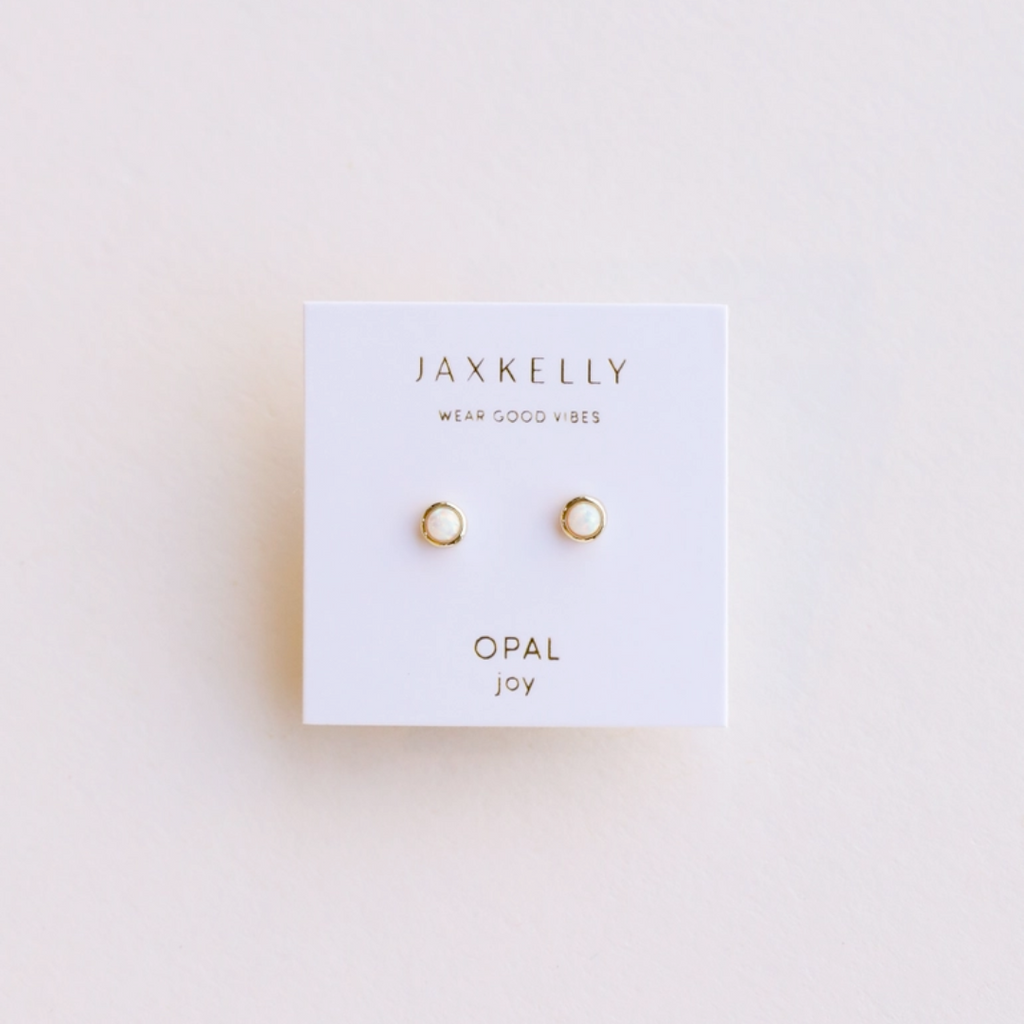 What's not to love about these sweet little studs? These earrings feature lab-grown round white opals and are made with 18ky gold vermeil over brass, with gold-plated sterling silver posts. The earrings measure 0.13" diameter. Handmade in US.