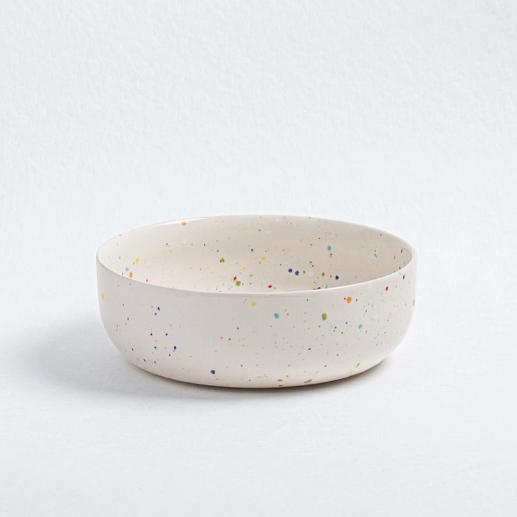 Serve your salad or dish in this fun party serving bowl by Egg Back Home! Handmade from earthenware, the bowl has a shiny glaze finish and a beautiful colorful palette. Measures approximately 9" in diameter and 3.15" tall. Microwave and dishwasher safe. Handmade in Portugal. Due to its handmade process, the bowls all have natural and unique imperfections. No two are exactly alike. The glaze colors, reactions, and design of the item received may differ from the photo.