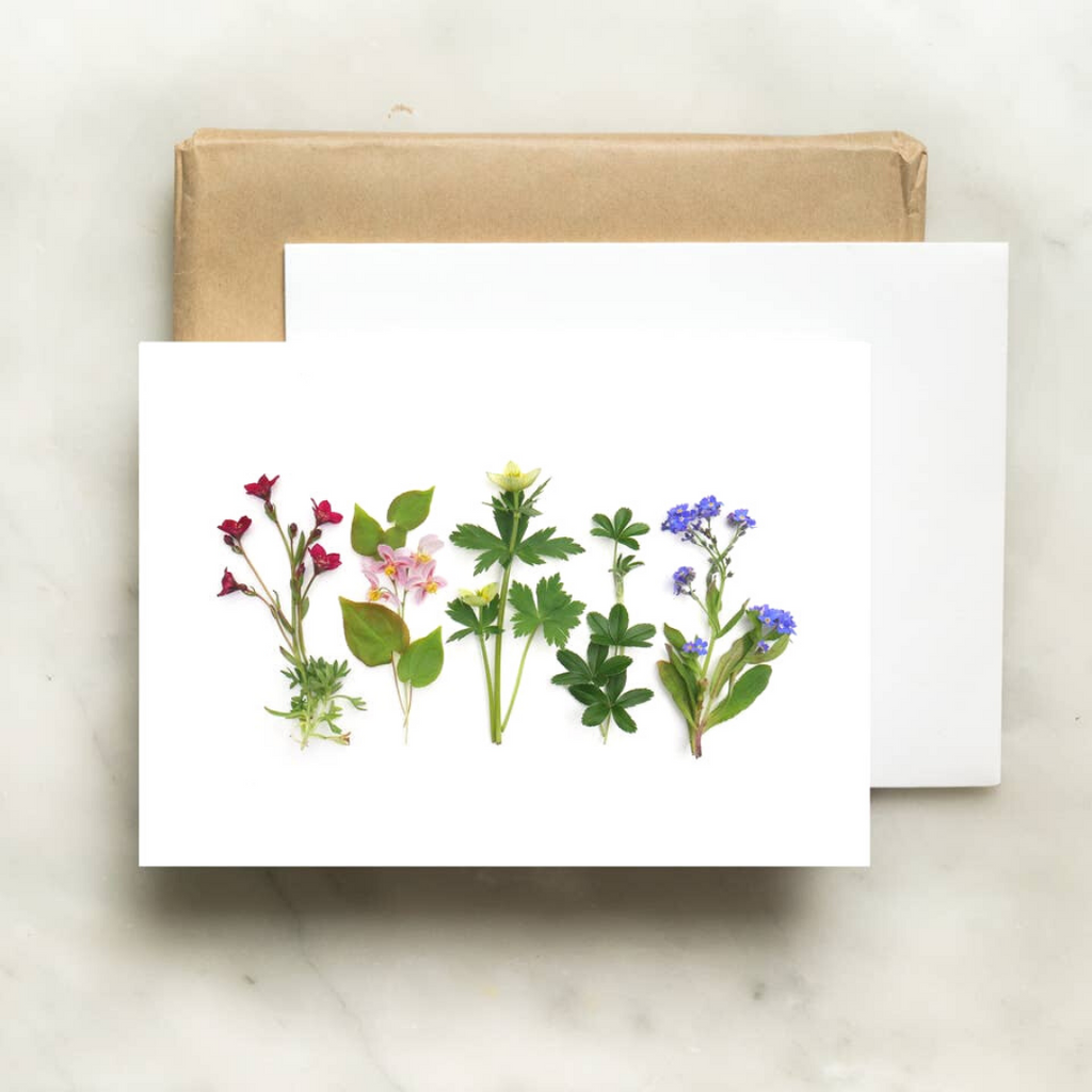 Created from a photo of fresh specimens, this Wildflower Rainbow card by Bottle Branch is a beautiful way to help commemorate any occasion. Printed on an appealingly soft and hefty card stock that is a delight to touch and use. The card measures 4.25" x 5.5" and includes a matching envelope. Inside is blank. Packaged sustainably in plant-based, compostable cello envelope.