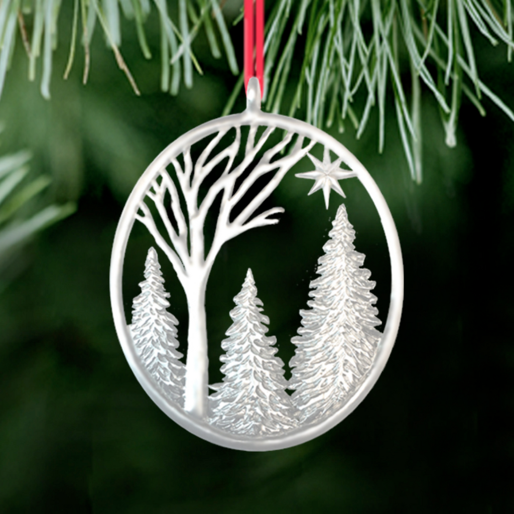 Celebrate the holidays with the lovely ornaments by Lovell Designs! Made from high polished pewter, this Winter Light ornament would make the perfect addition to your tree or to gift to your loved ones. Measures 3.5" tall and 2.5" wide. Comes with a red ribbon for hanging. Handmade in US.
