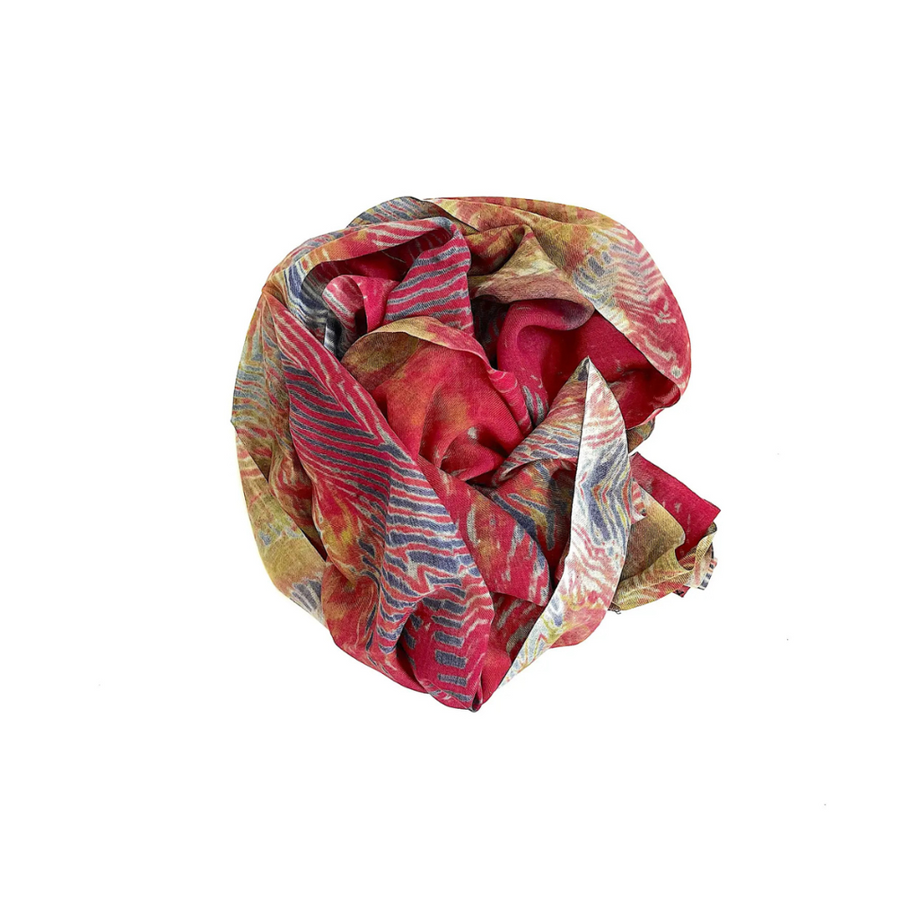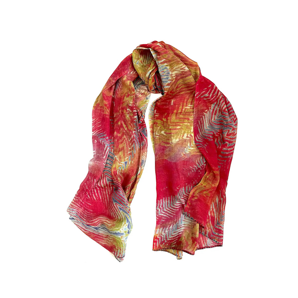 Combining traditional techniques with a contemporary design, this handwoven wool silk scarf in shades of red, blue, and green by Marigold Row is the perfect accessory year around for everyday wear. Measures 28"x 80". Dry clean only. Handmade in India.