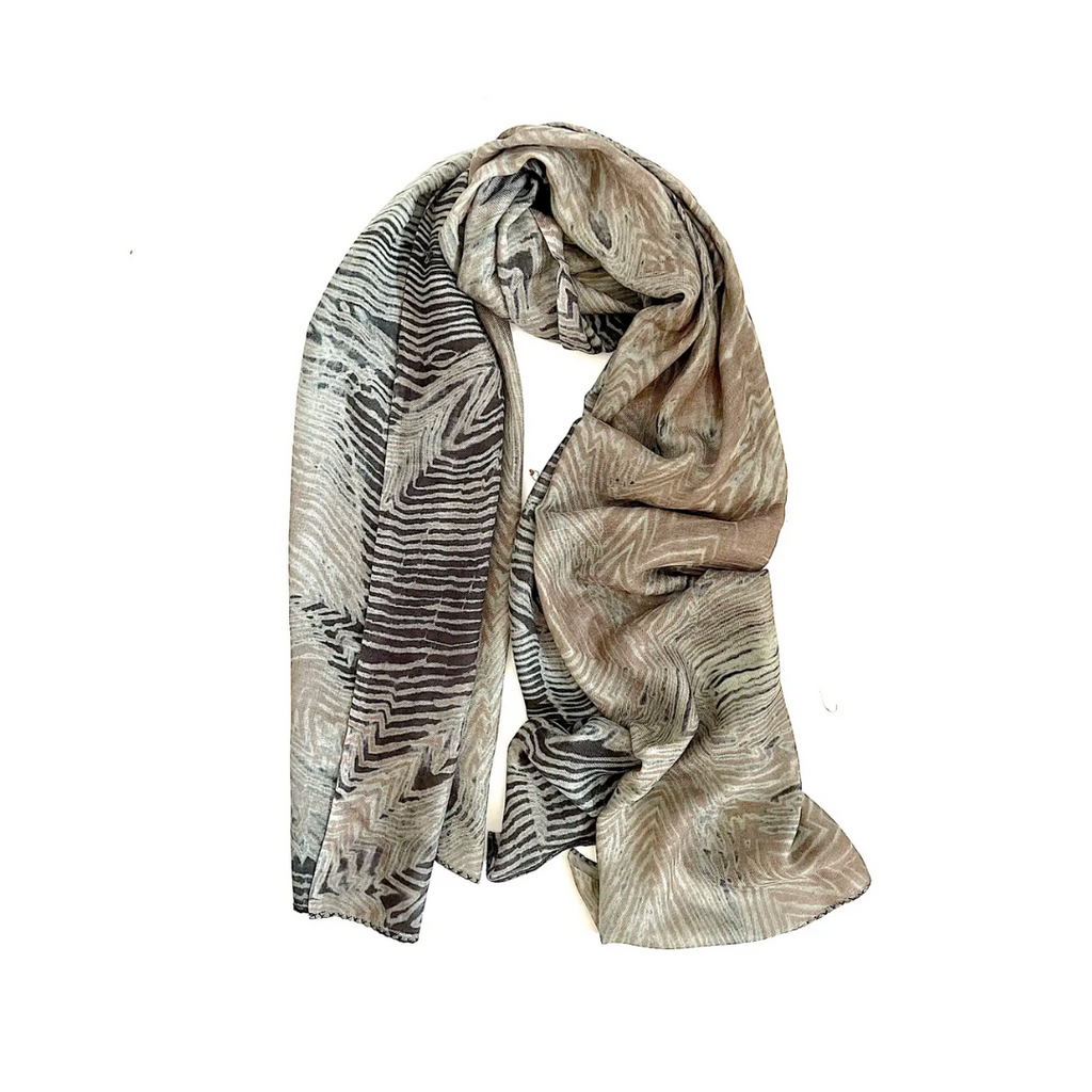 Combining traditional techniques with a contemporary design, this handwoven wool silk scarf in shades of grey and brown by Marigold Row is the perfect accessory year around for everyday wear. Measures 28"x 80". Dry clean only. Handmade in India.