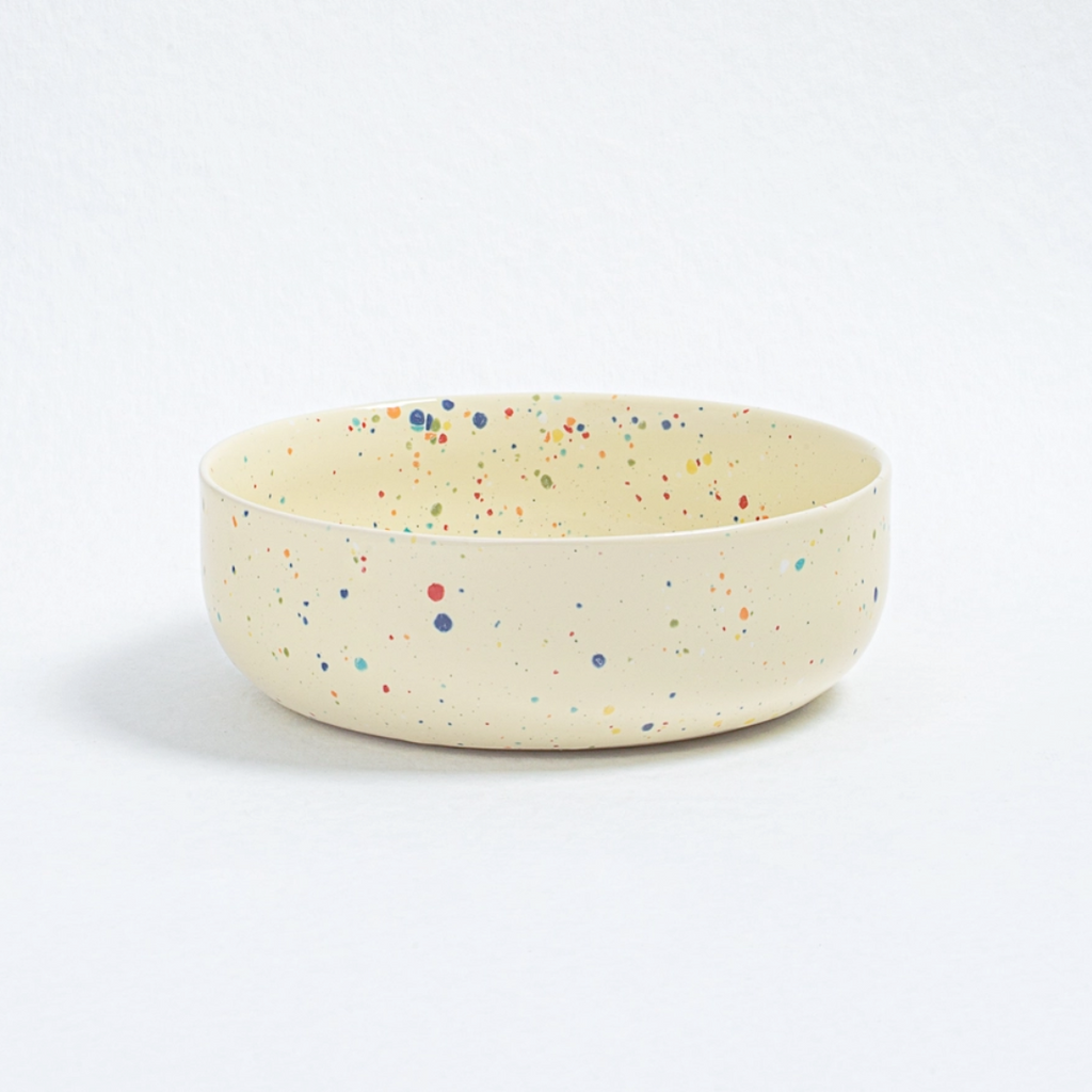 Serve your salad or dish in this fun party serving bowl by Egg Back Home! Handmade from earthenware, the bowl has a shiny glaze finish and a beautiful colorful palette. Measures approximately 9" in diameter and 3.15" tall. Microwave and dishwasher safe. Handmade in Portugal. Due to its handmade process, the bowls all have natural and unique imperfections. No two are exactly alike. The glaze colors, reactions, and design of the item received may differ from the photo.