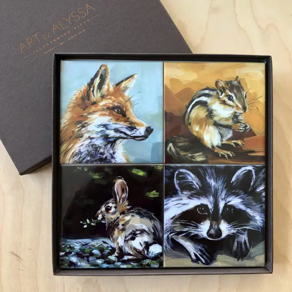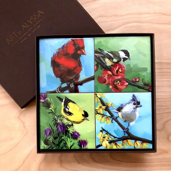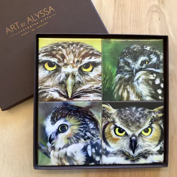 Alyssa, pronounced uh-LEE-suh, started Art by Alyssa in 2010 after graduating with a degree in illustration from Montserrat College of Art in 2007. While working at a stationery gift shop, the owner of the shop encouraged Alyssa to hang her paintings for sale, which ended up setting her on the path of eventually starting her own business. Alyssa has worked in small gift shops since the age of 16 and gained a natural interest in gift products. After selling her oil paintings she began experimenting with reproducing her paintings on different items to sell. Soon Alyssa was busy running the gift shop and selling her products at work and local craft fairs. By January of 2011 she made the decision to pursue Art by Alyssa full time. Now Art by Alyssa products are sold in independent boutiques that reach as far as Tokyo, Japan, museum gift shops, and multiple Audubons! After living and working in Massachusetts for many years, Alyssa and her family now live and run the business in New Hampshire.