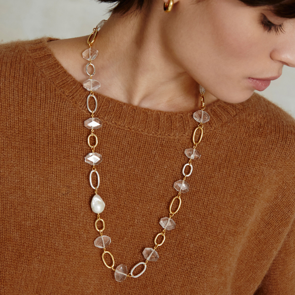 Designer Chan Luu founded the brand in 1996 with the idea of creating jewelry and accessories that united her passion for artisan-made crafts with a reverence for organic forms found in nature. Each piece is designed to tell a story, with an emphasis on craftsmanship, culture, and sustainability. Her collection is handmade in Vietnam using leather, 18k gold-plate and sterling silver, freshwater cultured pearls, semi-precious gemstones, and crystal.