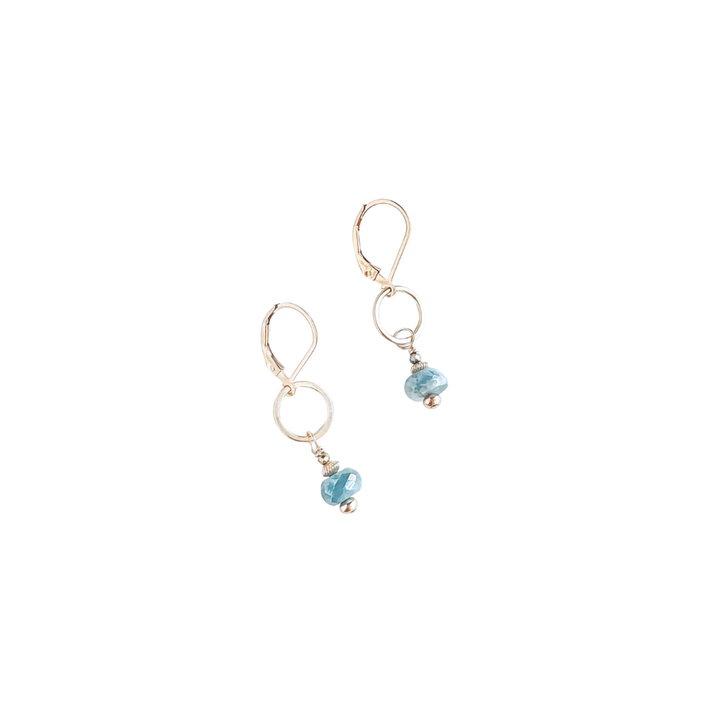 Minimalism at its best, these gold-filled earrings by Freshie & Zero are light, sexy, and great for everyday wear! The earrings feature a mystic blue quartz bead drop below gold fill circle links suspended on gold fill lever backs. The earrings measure 1.5" from the top to bottom, and 0.5" wide. Handmade in US.