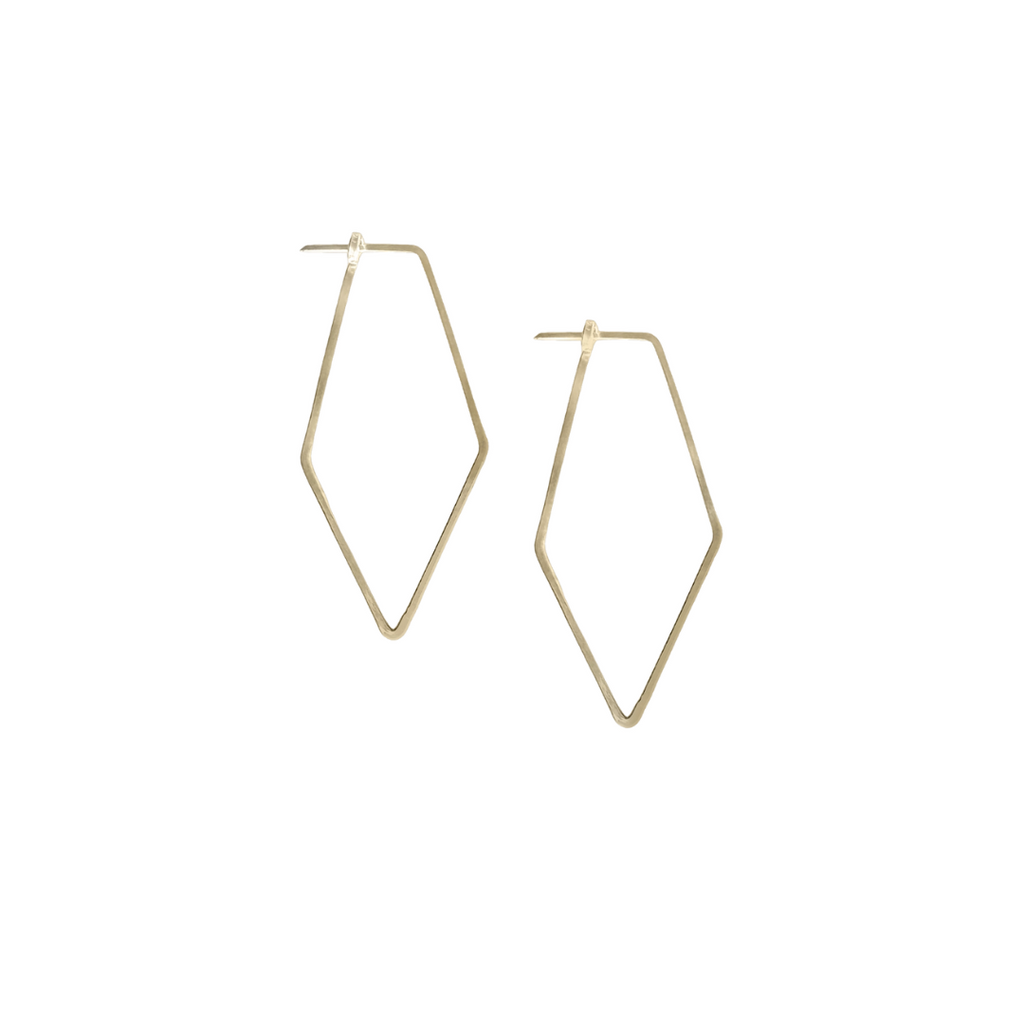 Minimalism at its best, these hoops by Freshie & Zero are light, sexy, and great for everyday wear! Hand shaped and hammered with a single piece of wire into an organic geometric shape, these hoops are gold fill and measure approximately 1.75" long and .75" wide. Handmade in US.