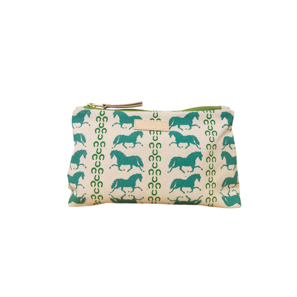 Be bold, colorful, and bring happiness to your everyday life with one of Erin Flett's fun accessories! Created from the artist's hand-drawn graphics that is screen printed, this cute bag is perfect for holding your essentials! Use it as a clutch or for traveling. Made with cotton barkcloth, cotton canvas lining, brass hardware, and leather detailing. Measures 9" x 7"x 2" gusset. Machine wash cold and dry flat. Handmade in US.