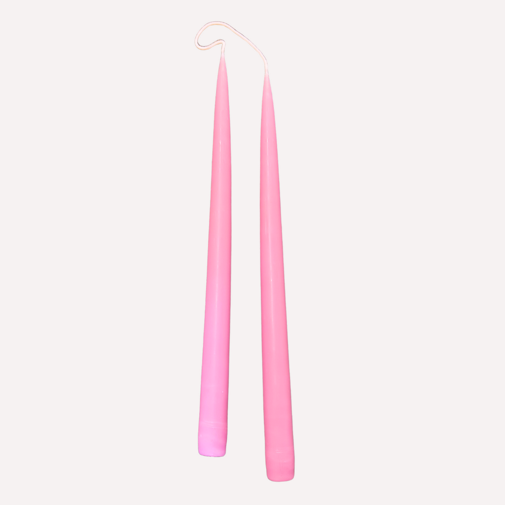 Combining old-world techniques with a blend of beeswax, other premium waxes and dyes, Danica Design creates hand-dipped candles in an array of colors. Unscented and solid color throughout, each candle is dipped 50 times for color depth and consistency. The tapered candles measure 13" in length and 7/8" at the base and have a burning time of approximately 11 hours. The candles are both smoke and drip free. The candles are sold by the pair with a joined wick. Handmade in US.