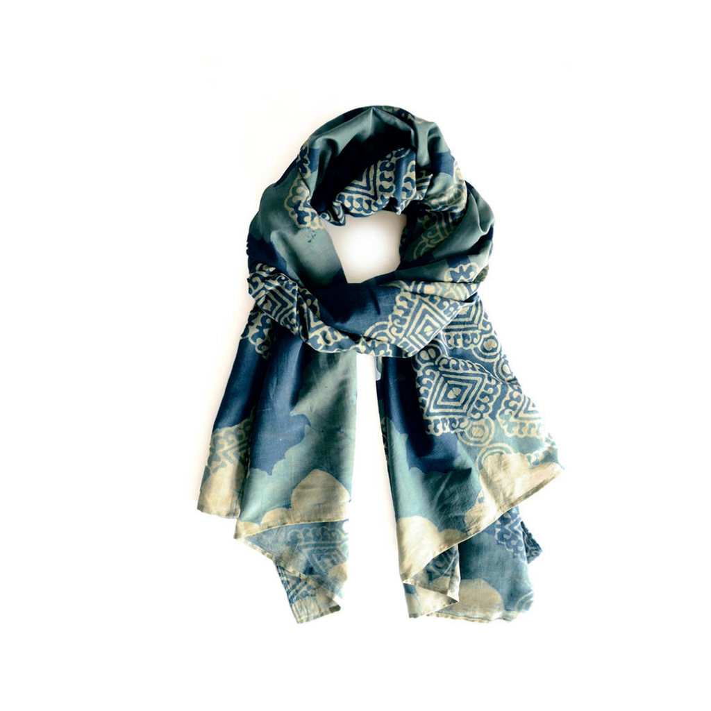 The Sohna Scarf is a celebration of beauty, true to its name which means “beautiful” in Punjabi. The scarf is dyed naturally and hand block printed using carved wooden blocks. Made of 25% silk and 75% cotton, the scarf is soft to the touch and great for everyday wear and on special occasions! Measures 34" x 78". Sizes may vary 1-2 inches and there will be some color variance due to the handmade nature of the piece.