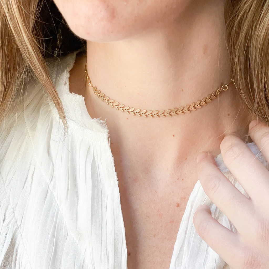 Let this Nest Pretty Things chevron paperclip necklace be part of your daily jewelry ensemble! Made with two styles of gold plated over brass chains, this adjustable necklace can be worn from 16-18". It's the perfect chain for layering! Handcrafted in US.