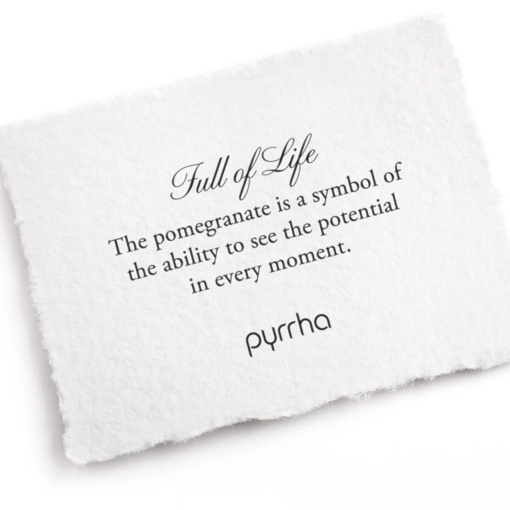 Cast using authentic wax seals and imagery from the Victorian Era, Pyrrha talismans are designed to inspire the wearer with its heralded meaning. This stretchy bead bracelet features a talisman of a pomegranate, a powerful symbol of the ability to see the potential in every moment.. The bracelet is made with aquamariine beads that are thought to heal with happiness and hope. The 100% recycled sterling silver talisman measures 0.43" x 0.55" and the aqua beads are 6mm (may vary slightly in size and color). The bracelet measures 7" in length. Comes with a meaning card. Handcrafted in Vancouver, Canada.