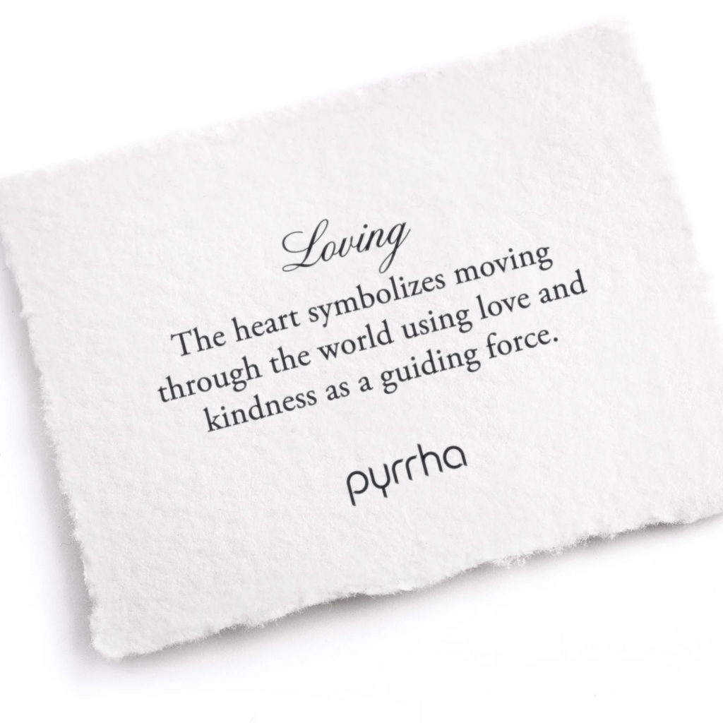 Cast using authentic wax seals and imagery from the Victorian Era, Pyrrha talismans are designed to inspire the wearer with its heralded meaning. This stretchy bead bracelet features a talisman of a heart, symbolizing moving thorugh the world with love and kindness as a guiding force. The bracelet is made with rutilated quartz beads that are thought to heal emotional wounds and lift the spirit. The 100% recycled sterling silver talisman measures 0.51" in diameter and the quartz beads are 6mm (may vary slightly in size and color). The bracelet measures 7" in length. Comes with a meaning card. Handcrafted in Vancouver, Canada.