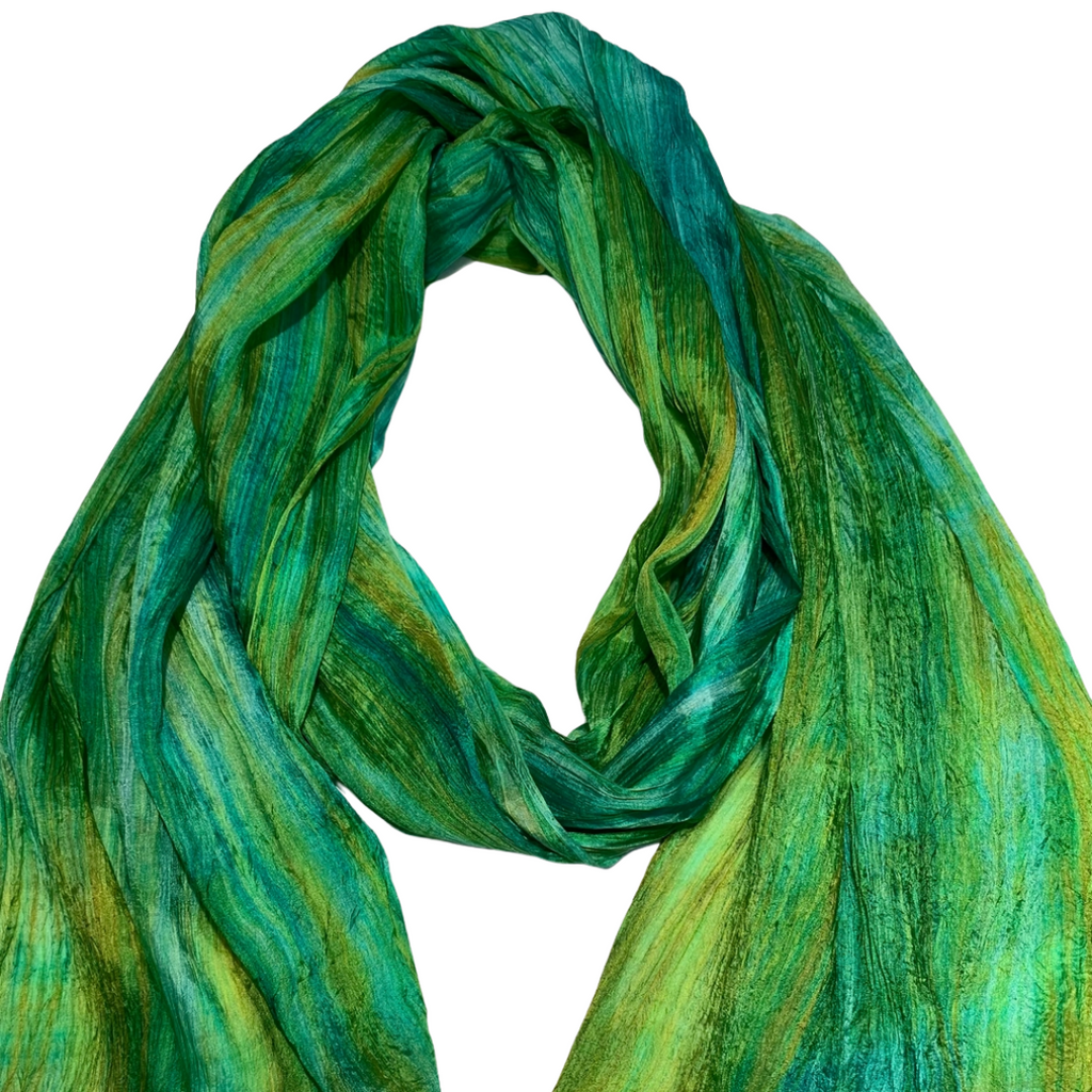 Reminiscent of a watercolor painting, LUA's beautiful hand-woven, hand-dyed scarf would make a perfect addition to your wardrobe. Made from naturally farmed and pure Mulberry silk, all LUA scarves are 100% silk and are super soft and lightweight. Measures 72"L x 23"W. Because the scarves are individually hand dyed, there will be variations in the colors and watercolor pattern. Hand wash or dry clean. Made in Vietnam.