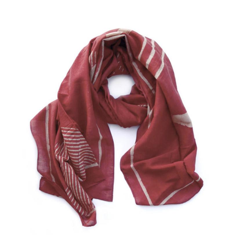 Inspired by the chakra, this beautiful red scarf by Ichcha is dyed naturally and hand block printed using carved wooden blocks. Made of 25% silk and 75% cotton, the Chakra scarf is soft to the touch and great for everyday wear and on special occasions! Measures 36" x 78". Sizes may vary 1-2 inches and there will be some color variance due to the handmade nature of the piece.