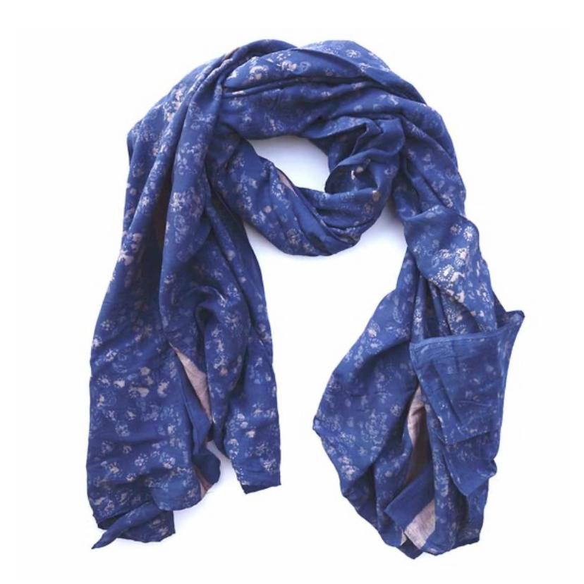 Inspired by tiny flowers found in India, this beautiful blue and pink scarf by Ichcha is dyed naturally and hand block printed using carved wooden blocks. Made of 25% silk and 75% cotton, the Nilampuri scarf is soft to the touch and great for everyday wear and on special occasions! Measures 36" x 78". Sizes may vary 1-2 inches and there will be some color variance due to the handmade nature of the piece.