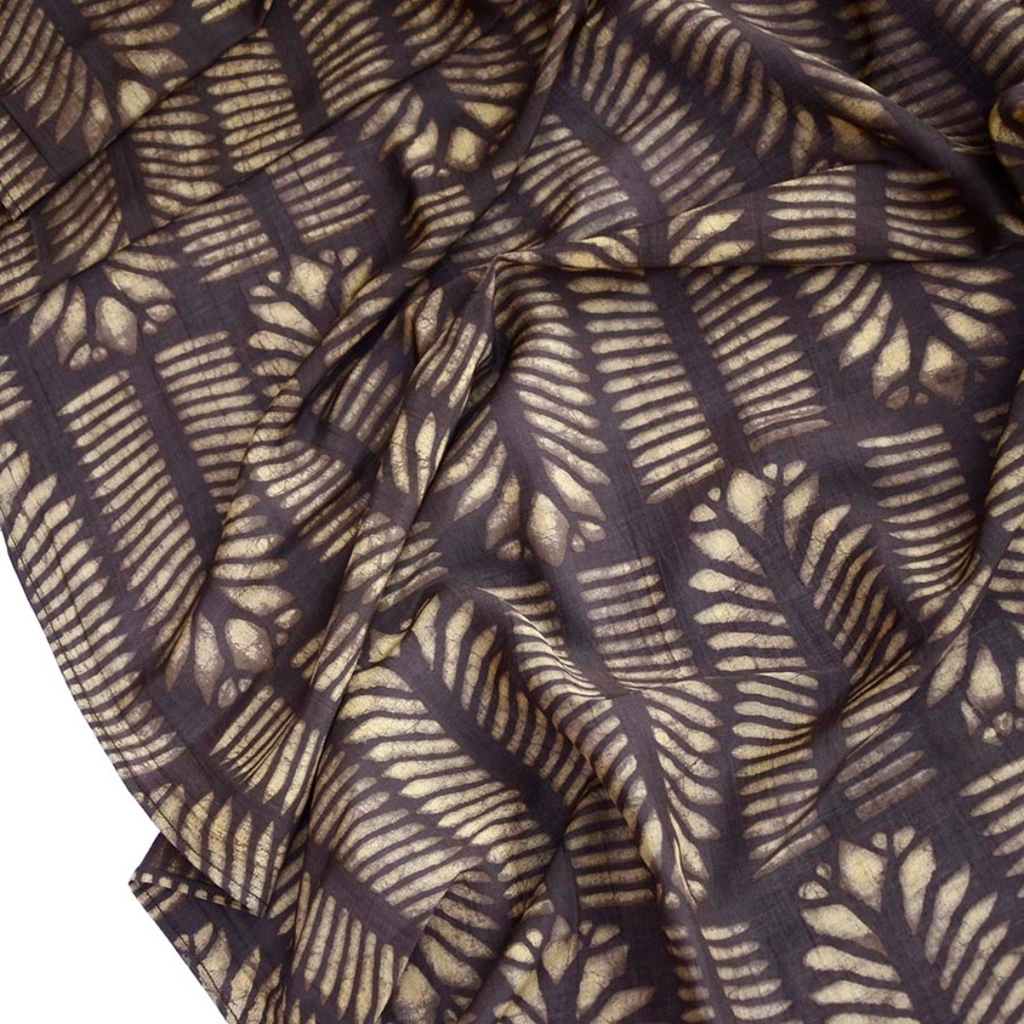 This beautiful brown colored geometric scarf by Ichcha is dyed naturally and hand block printed using carved wooden blocks. Made of 25% silk and 75% cotton, this scarf is soft to the touch and great for everyday wear and on special occasions! Measures 34" x 78". Sizes may vary 1-2 inches and there will be some color variance due to the handmade nature of the piece.