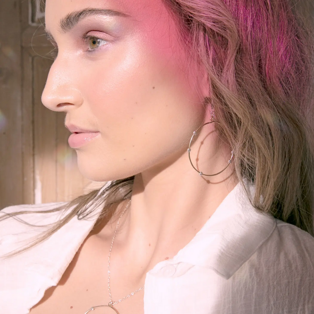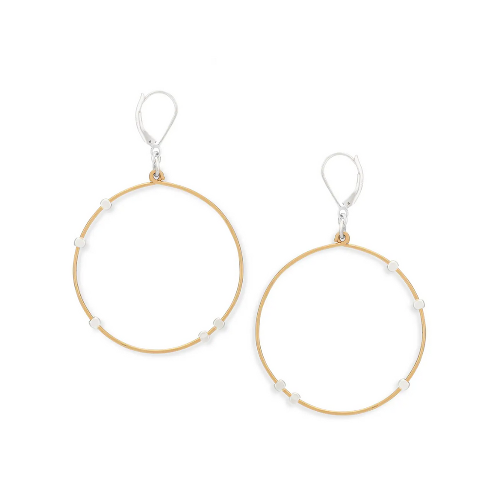 Inspired by the starry night sky, these mixed metal Cosmos earrings by Freshie & Zerio have a nice celestial vibe. Made of sterling silver and gold fill, these minimalist earrings are lightweight and sculptural with a nice movement to them. Earrings measure approximately 2.75" long from the top of the silver leverback earwires. Handmade in US.