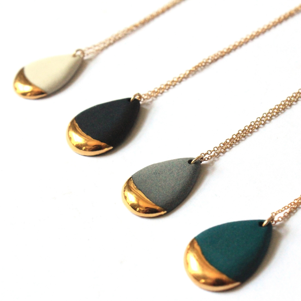 Inspired by nature, the ocean, organic shapes, and textures, Mier Luo jewelry will bring a classic and unique twist to your personal collection! Each piece is made from porcelain and 22k gold glaze. The Gold Dipped Teardrop Necklace has an 18" gold filled chain and the pendant measures approximatly 0.75" long by 0.56" wide. Please note there might be slight variations in the color and size since each piece is handmade, sculpted, and assembled by Mier herself in her studio in New York City.