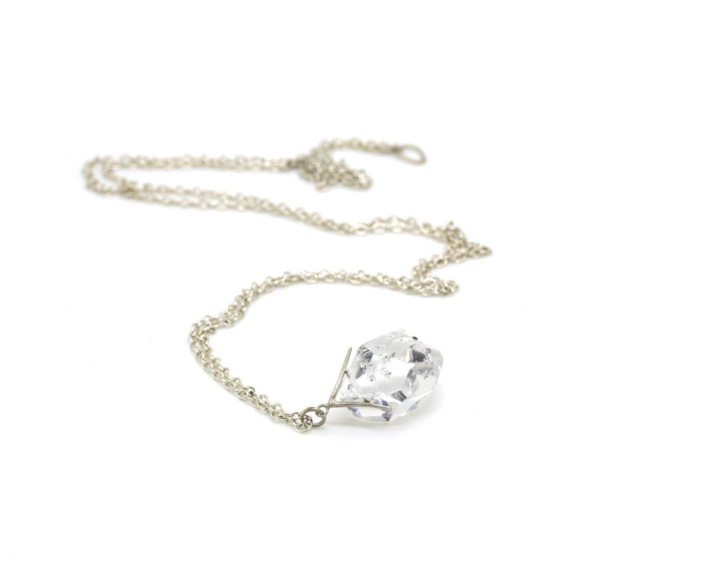 Cherish nature's beautiful offerings with Hannah Blount Jewelry! Her simple, sophisticated aesthetic charms its way through her nature-inspired designs. This sticks & stones necklace is made of sterling silver with a grand herkimer quartz, and the pendant measures 0.63 x 1.25 inches. The chain is 32 inches long. Handcrafted in US.