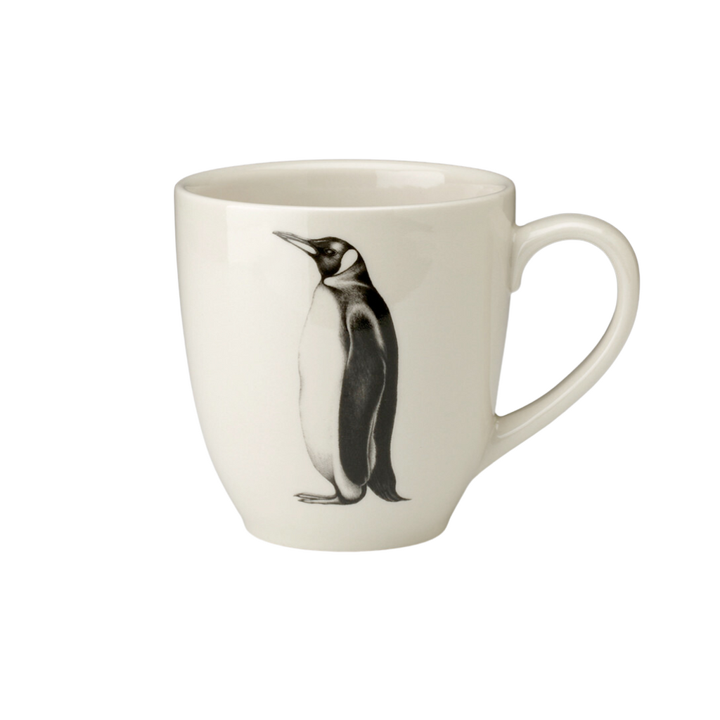 Welcome to the charm and serenity that is nature into your home with a beautiful Laura Zindel piece! Both functional and decorative, this mug adorns the artist's original illustration of a king penguin. Made from high-resistance white china. Measures 4.25" tall. Microwave and dishwasher safe. Handcrafted in US.