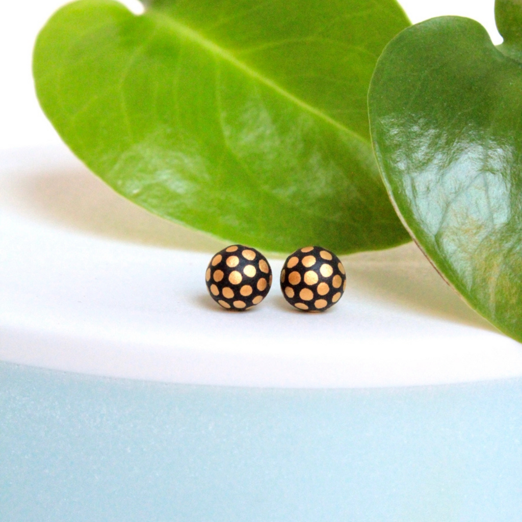 Inspired by nature, the ocean, organic shapes, and textures, Mier Luo jewelry will bring a classic and unique twist to your personal collection! Each piece is made from porcelain and 22k gold glaze. The Ladybug Stud Earrings have gold filled posts and measure approximatly 0.31" in diameter. Please note there might be slight variations in the color and size since each piece is handmade, sculpted, and assembled by Mier herself in her studio in New York City.