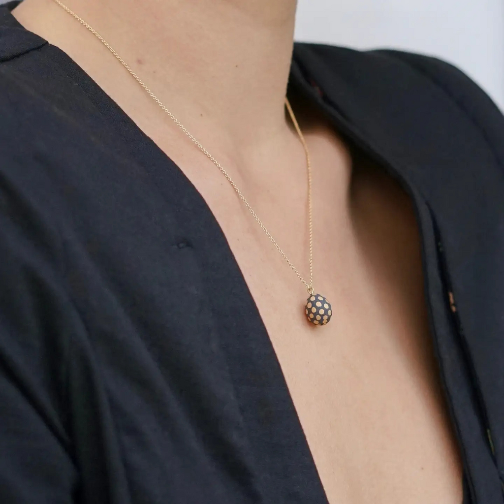 Inspired by nature, the ocean, organic shapes, and textures, Mier Luo jewelry will bring a classic and unique twist to your personal collection! Each piece is made from porcelain and 22k gold glaze. The Ladybug Teardrop Necklace has an 18" gold filled chain and the pendant measures approximatly 0.63" long by 0.38" wide. Please note there might be slight variations in the color and size since each piece is handmade, sculpted, and assembled by Mier herself in her studio in New York City.