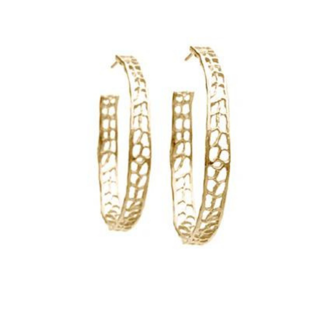 Elegant design meets the innate beauty of nature in Catherine Weitzman jewelry! Cast from real fan coral found on the beaches in Hawaii, these coral hoop earrings have textured detailing that mirror the natural world. Made of 18k yellow gold vermeil, these earrings measure 1.5" in diameter. Handcrafted in Honolulu, Hawaii.