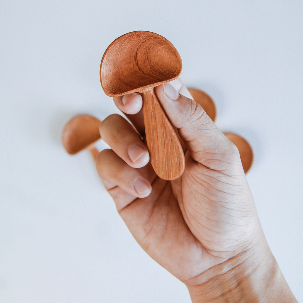 Add a natural touch to your tabletop or kitchen with this sweet mushroom spoon by 194 Craft House. Made from sustainably-sourced Doussie wood with a coating of olive oil, this hand carved utensil is perfect for cooking, serving, and eating! Measures 3.75" long and 2" at the widest. 100% food safe with no BPA, PVC, or phthalates. Handwash only. Dry thoroughly after rinsing. Apply olive oil from time to time to preserve the wood. Handmade ethically in Vietnam.