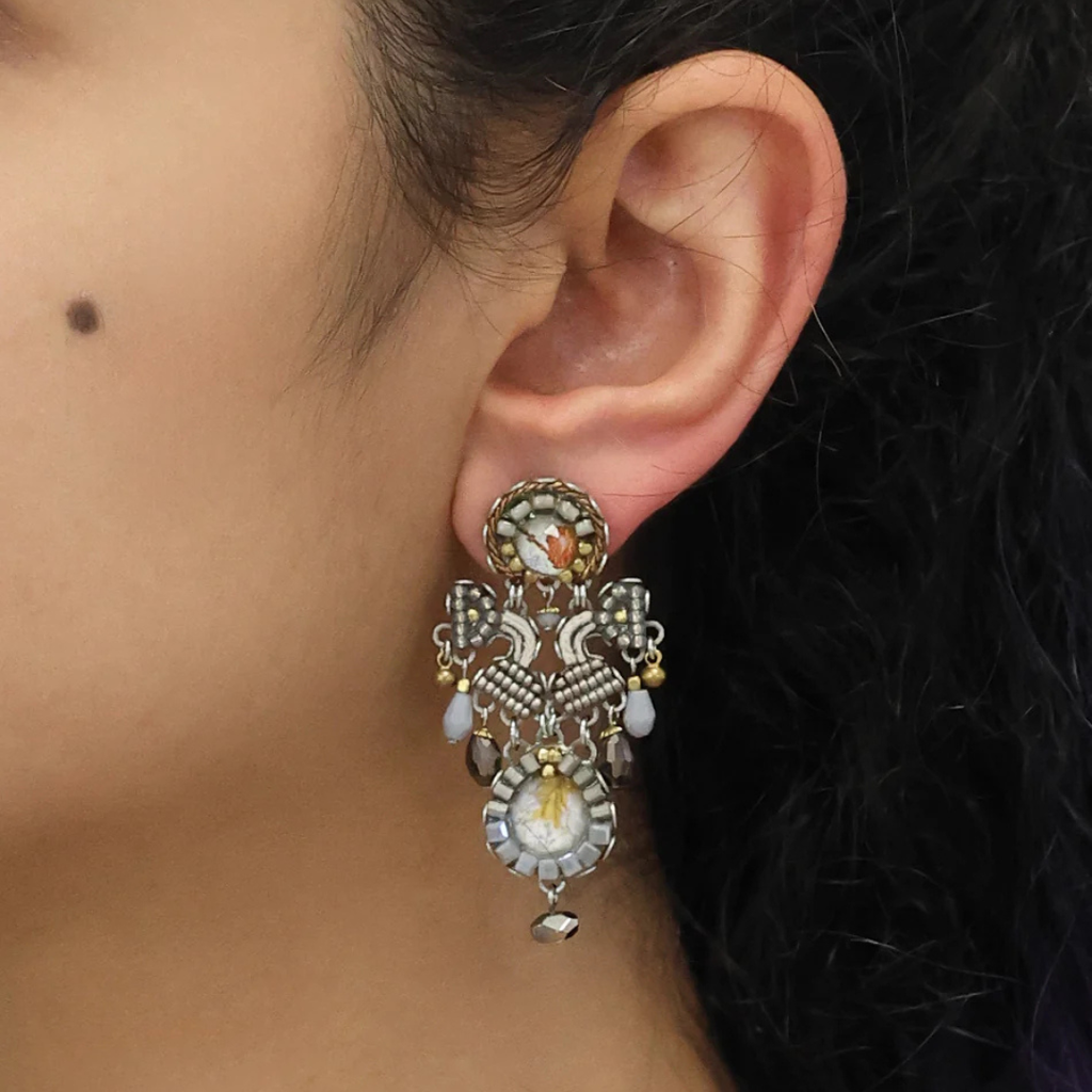 Fun and striking, Ayala Bar jewelry is full of whimsy and perfect for everyday wear or for dressing up. Made with silver plated brass & metal alloys (nickel & lead free), glass beads, ceramic stones, crystal rhinestones, and patterned paper or fabrics. These leverback earrings measure 2.25" at the widest point and 2.75" long. Handmade in Israel.